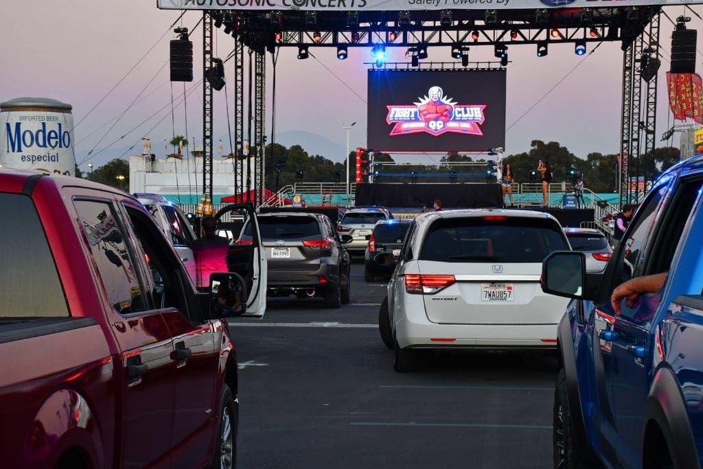 Six exciting pro wrestling and Lucha Libre bouts had the crowd leaning on their horns and flashing their headlights all evening to show their appreciation for great body slams, drop kicks, and high-flying action.