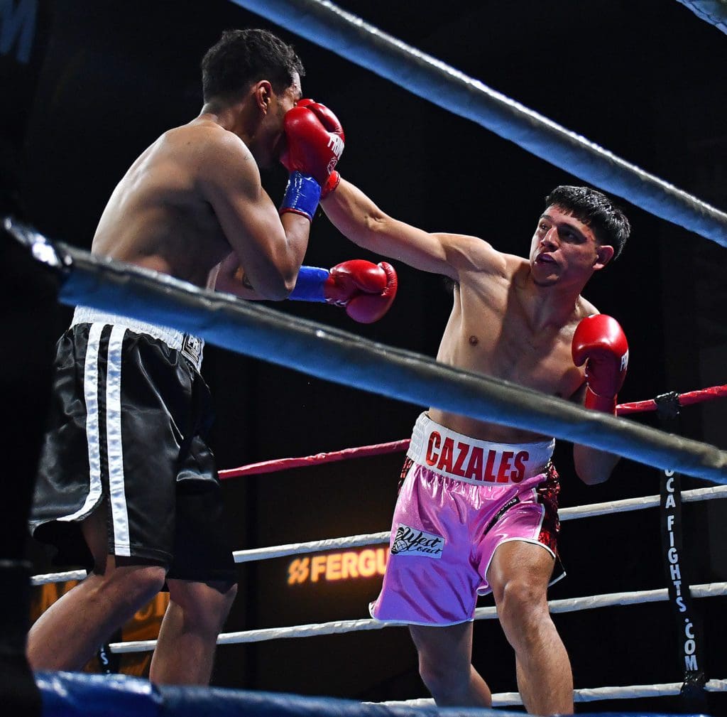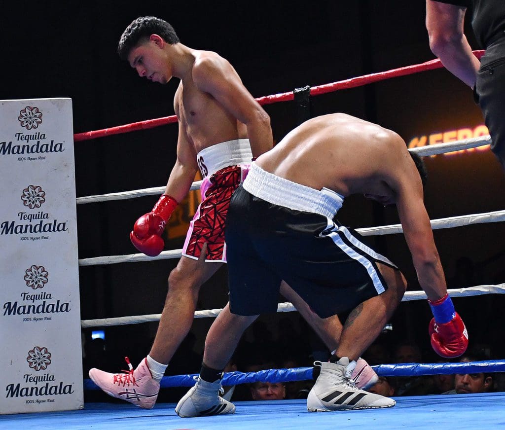 Closing the show was the Tequila Mandala Fight of the Night! This was a 4 round Super Middleweight bout between Anaheim’s Ruben Cazales 4-0 (3KOs), fighting Antonio Alfaro 3-5 (3KOs) from the San Fernando Valley. These two warriors engaged one another from the jump, as they felt the other out. Two minutes into the round, after throwing some shots on the inside, and with Cazales against the ropes, he landed a shot on Alfaro, who stood on the inside too long, that ended the night.