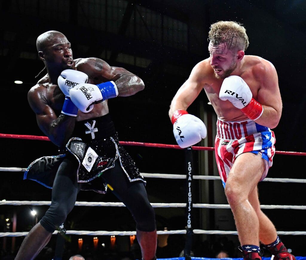 Turning out the lights in the 7th (and final) bout, was a hotly anticipated battle between Honolulu’s fast tracked Jordan Panthen (9-0 8KOs) aka The Mahalo Masher vs. Victor Toney (8-3-1 6KOs) from Youngstown, Ohio. Victor is a relative of the great James “Lights Out” Toney, and it was apparent from the start that Panthen was taking this bout VERY seriously. Having recently done a stint on the THE FIGHT (the Teddy Atlas podcast with Ken Rideout), Panthen’s personality has been coming out more as of late. He’s fought at The Hangar 4 or 5 times and only one of those bouts has been close to being competitive (and it also went the distance). Facing a very credible foe in Victor Toney, Panthen jumped on him from round one and was his usual relentless self. He was rewarded for his efforts with a third round knockout in this scheduled 8 rounder.