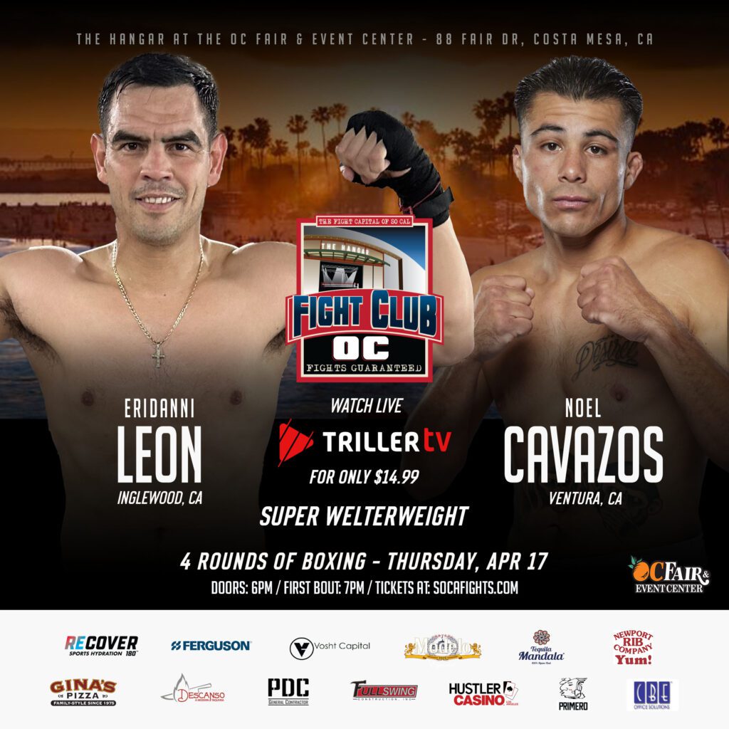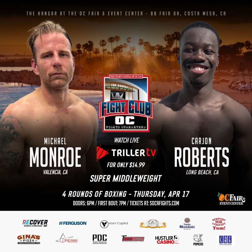 A solid Six bout pro boxing and pro MMA show awaits fight fans on Thursday, April 17th as Fight Club OC gears up once again for a night of fight action inside The Hangar at the OC Fair & Event Center in Costa Mesa, CA.
