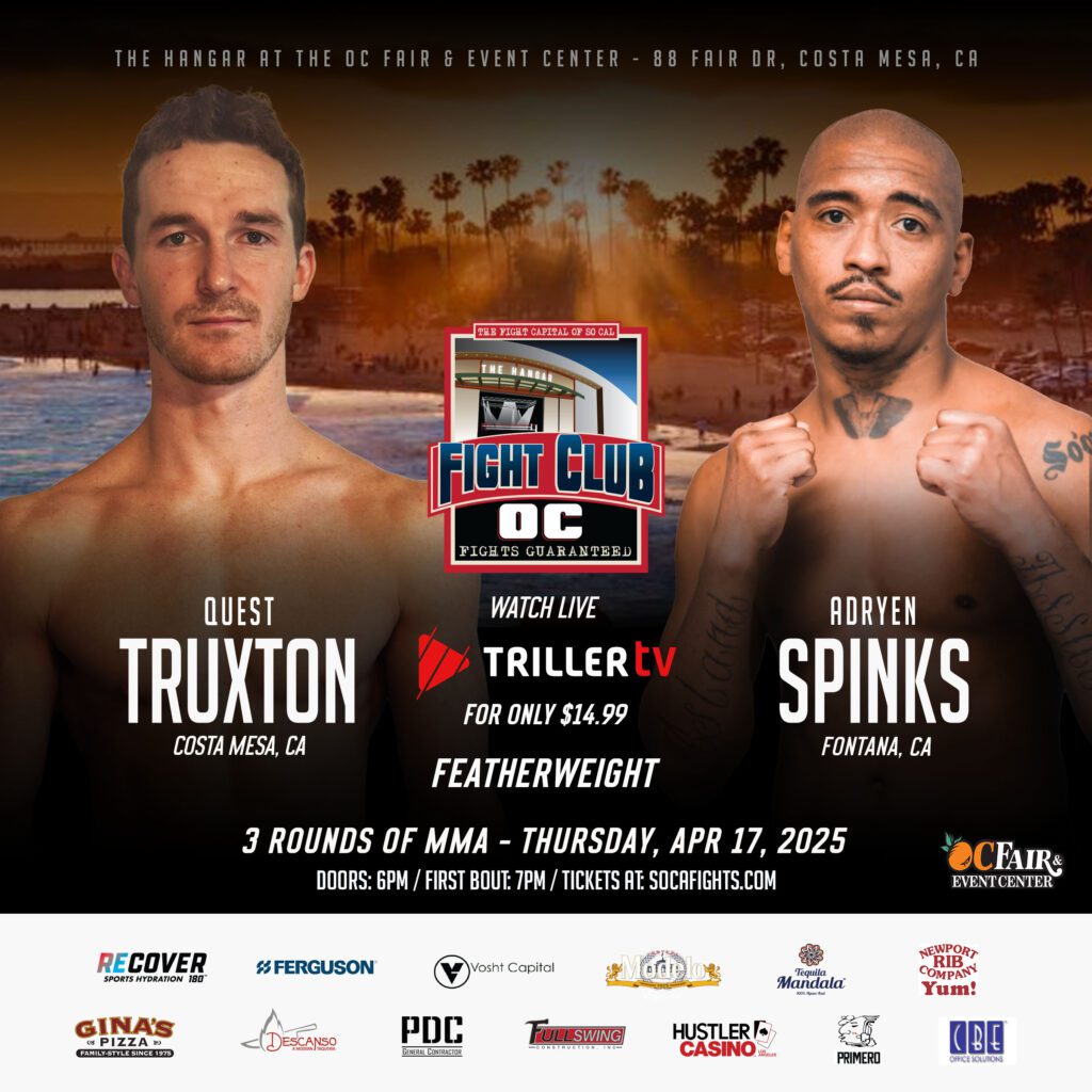 WIN CASH AT SHOWS: At all 2025 Fight Club OC shows, fans can win up to $2,000 in CASH! With the Hustler Casino KO Promotion six fans can win from $100 to $1,000, and with the OC Food Bank KO OC Hunger promotion, all fan that brings a non-perishable food item will be entered in a drawing with five participants each winning $200 cash.