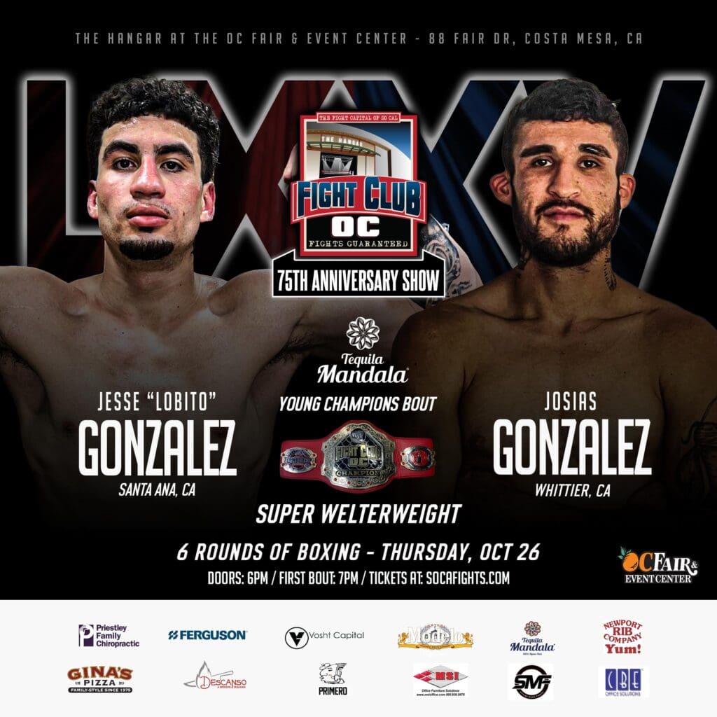 Fighting for the Tequila Mandala Young Champions Belt on our October 26th show will be Jesse “Lobito” Gonzalez out of Santa Ana vs Whittier’s Josias Gonzalez. This fight has #FightsGuaranteed all over it, so make sure to keep some of that cash to wad up for this bout!