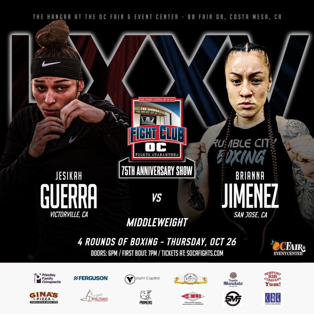 Also on October 26th will be 10x National Champion Pan American Games Gold Medalist Jesikah Guerra currently at 2-0 as she takes on amateur MMA fighter turning Pro Boxer in Brianna Jimenez. The fans have been asking for a female bout all year long, so to have two female bouts on our October 26th show is going to be something special.