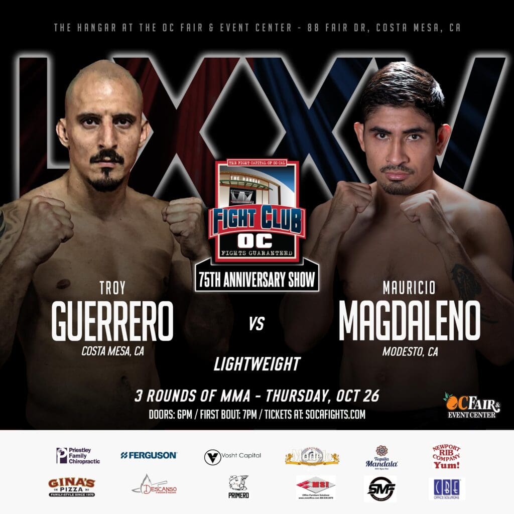 Our second MMA bout will see Troy Guerrero as he is set to take on Mauricio Magdaleno.