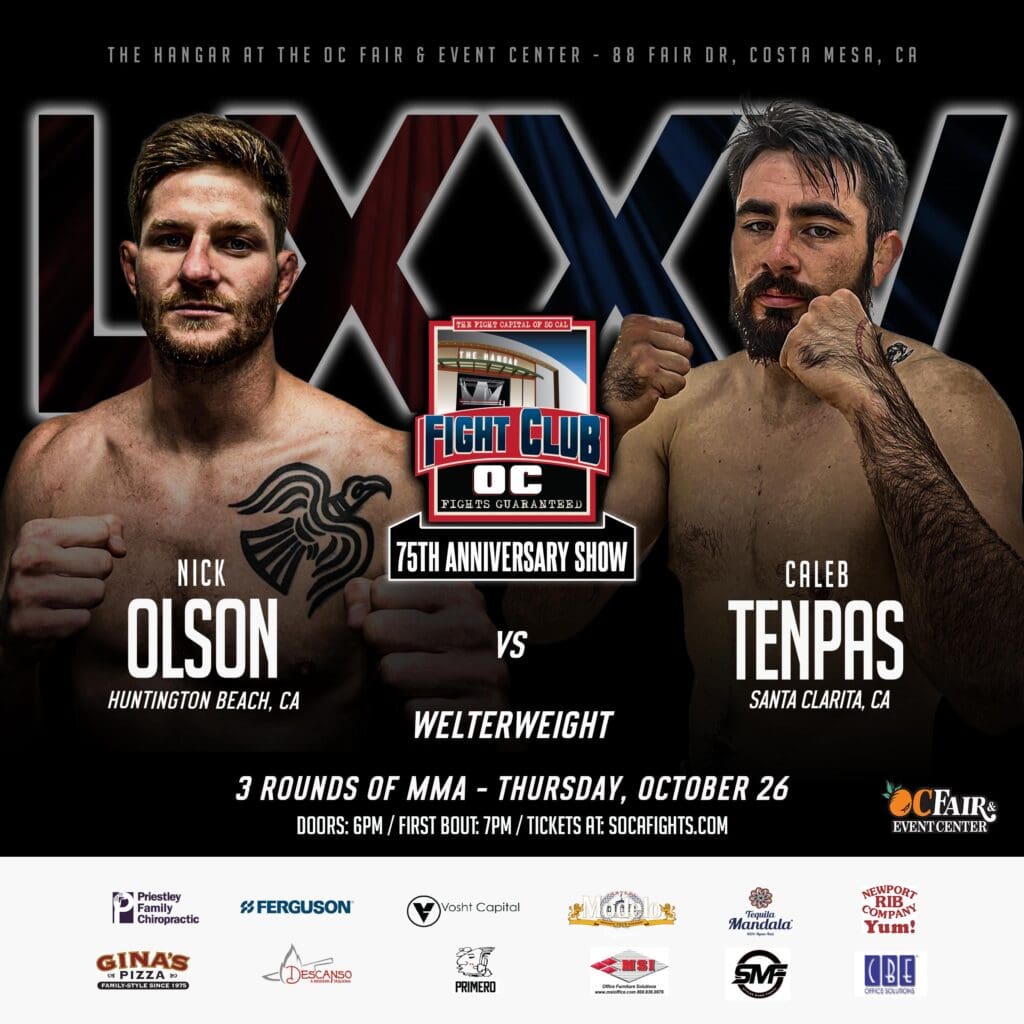 Plus on the MMA side of things Huntington Beach’s Nick Olson is back against Caleb Tenpas making his Pro Debut out of Santa Clarita, CA.