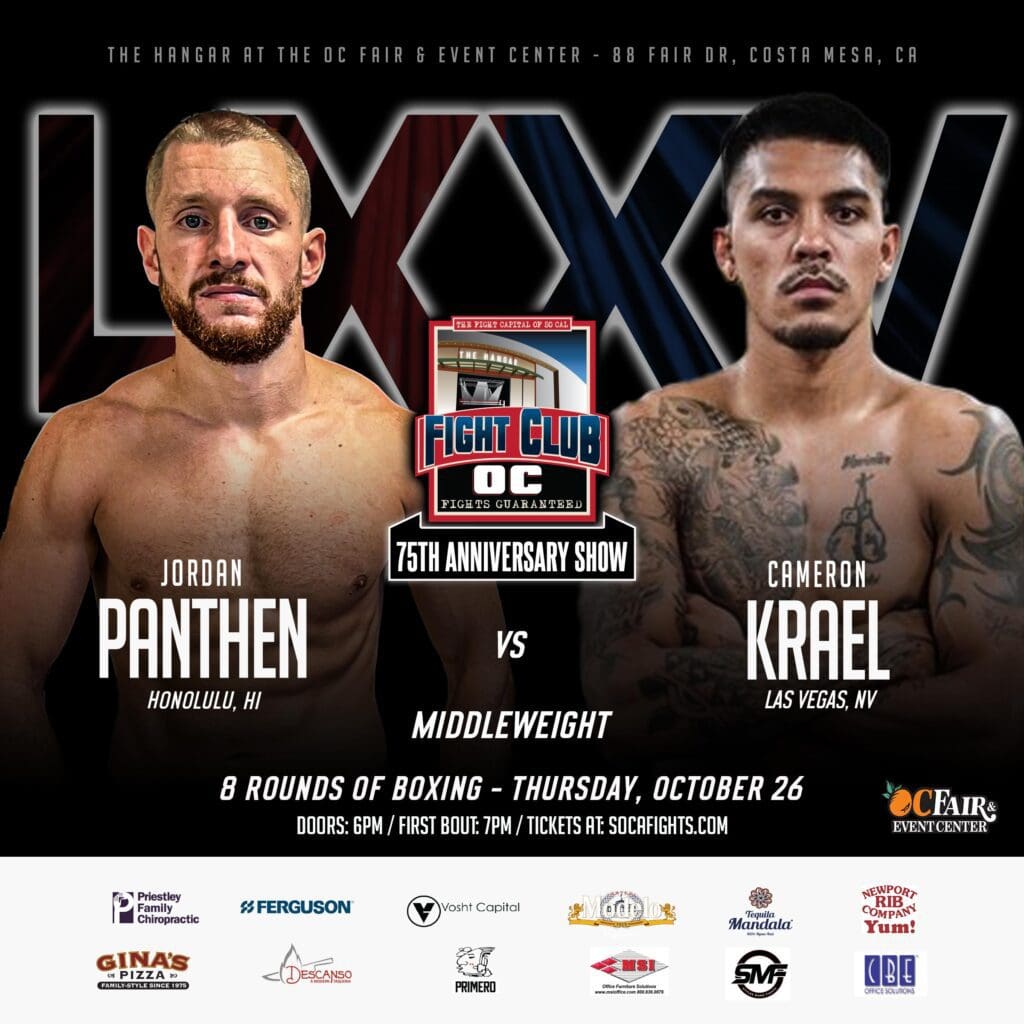 Knockout artist 5-0 (5KO’s) Jordan Panthen will return on the October show this time in a 8 rounder against Cameron Krael from Las Vegas, NV with a solid record of 20-29-3 (7KO’s).